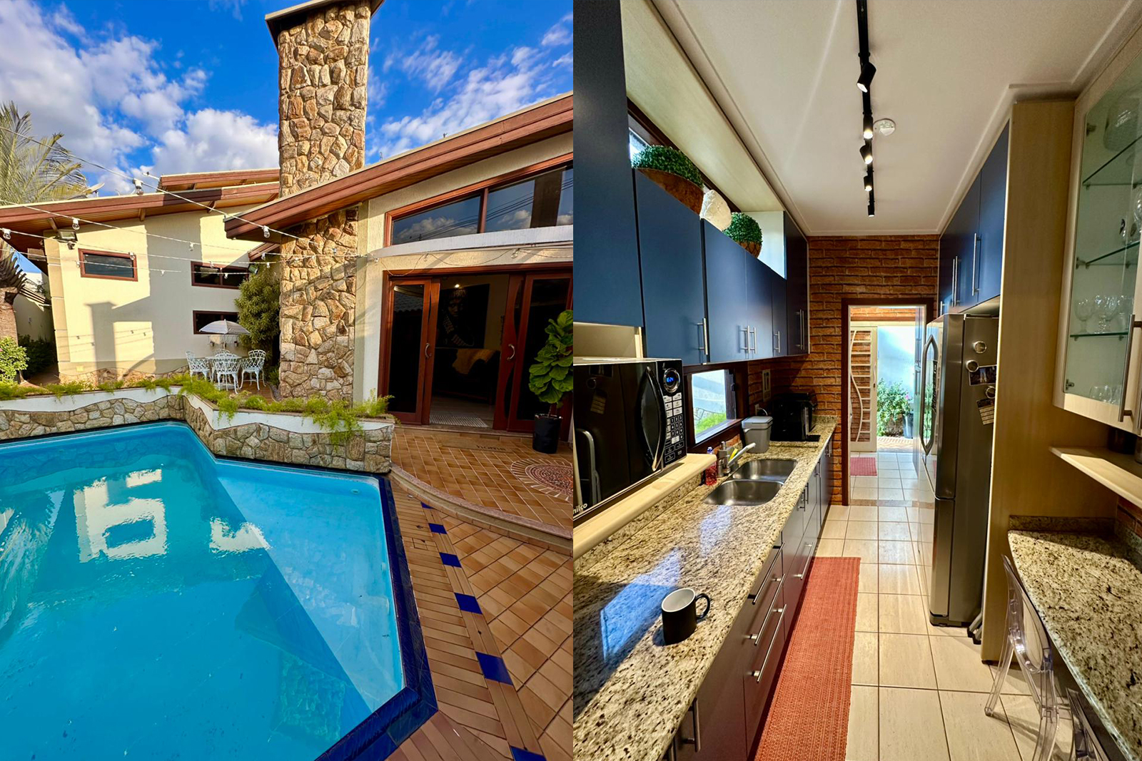 Piscina aquecida e área gourmet para o verão, complementadas por uma charmosa lareira para o conforto do inverno.